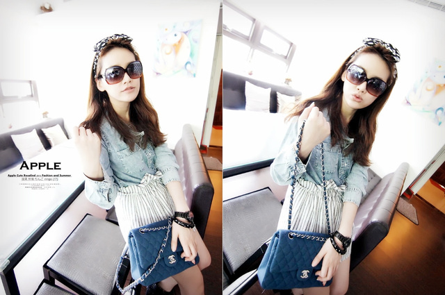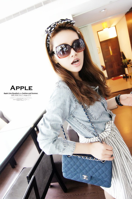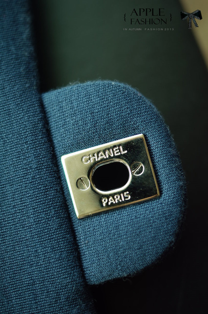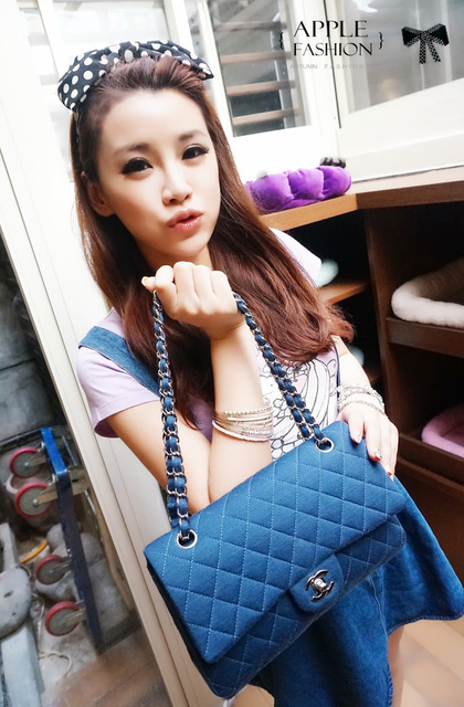 菱格紋雙蓋雙鍊牛仔藍海軍藍丹寧佳積布銀鍊包