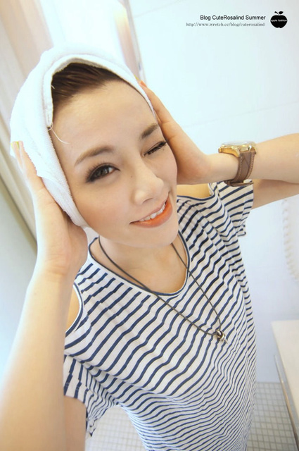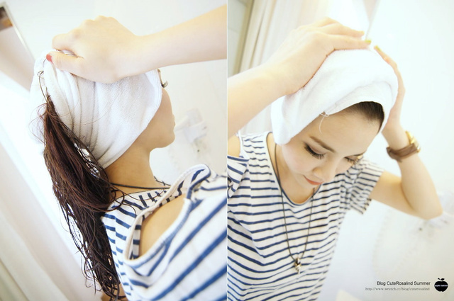 如果家裡有浴帽也可以把毛巾與頭髮一起套起來