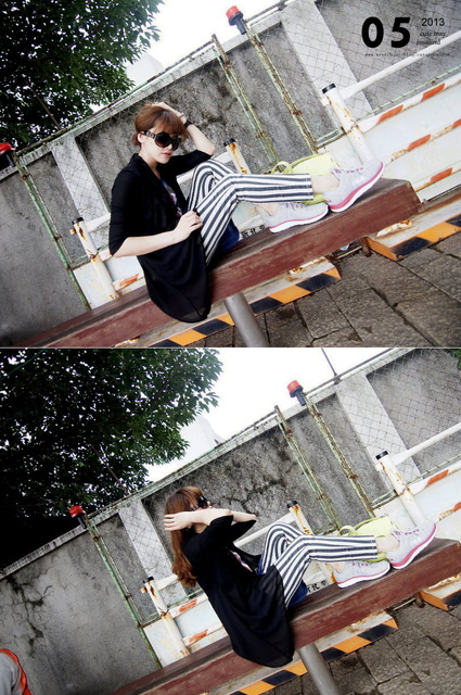 剛好搭配上今年超流行的直條紋下半身