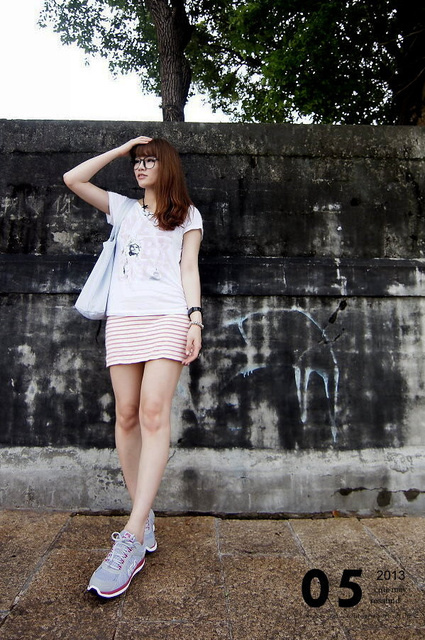 只是鞋子從高跟鞋換成了FILA的慢跑鞋