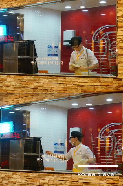 就可以看到師傅正在做餅皮的樣子