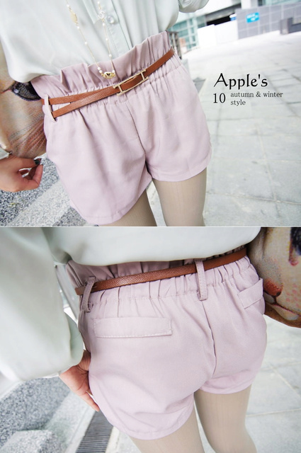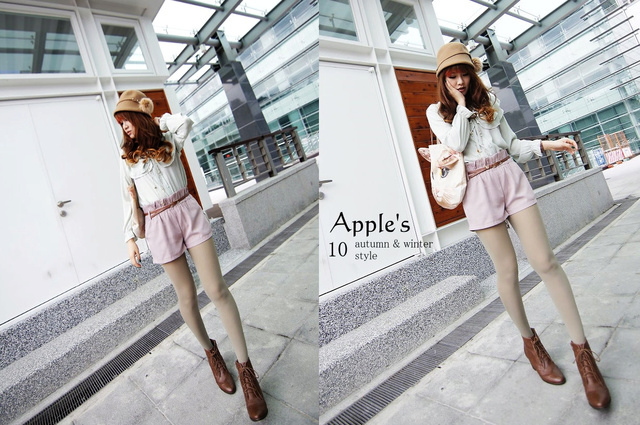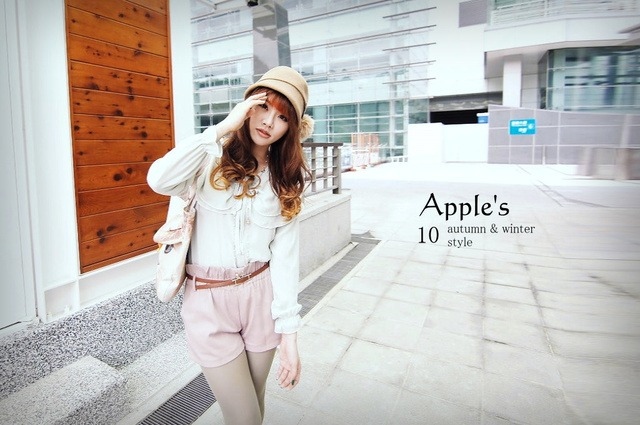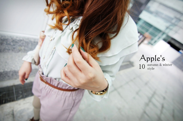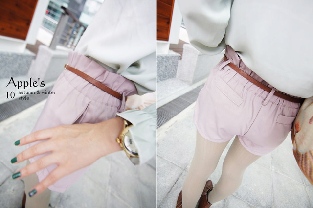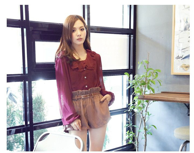 雙層荷葉領綁帶雪紡襯衫-粉綠 + 質感荷葉邊腰頭西裝短褲附腰帶-咖