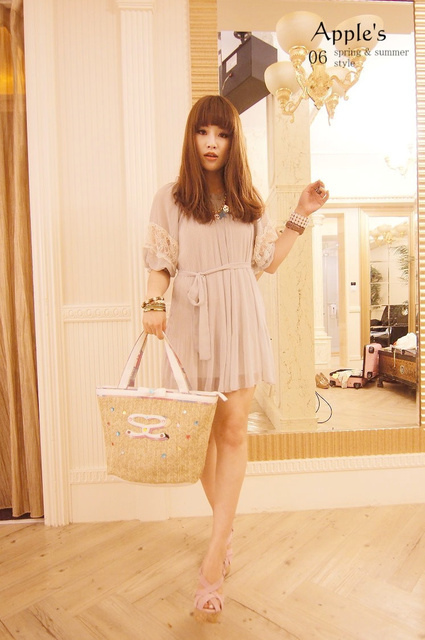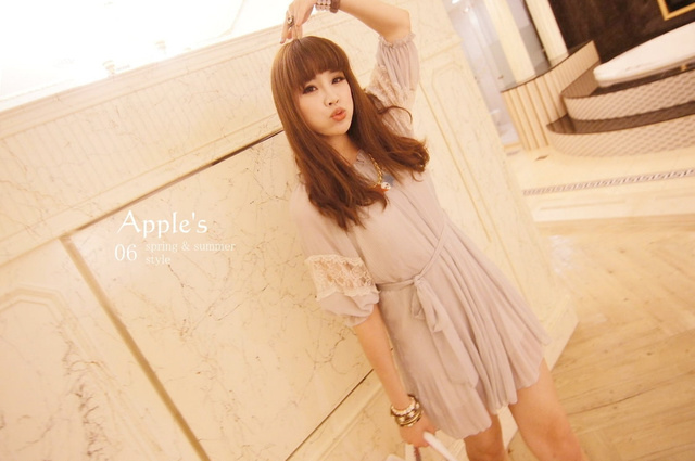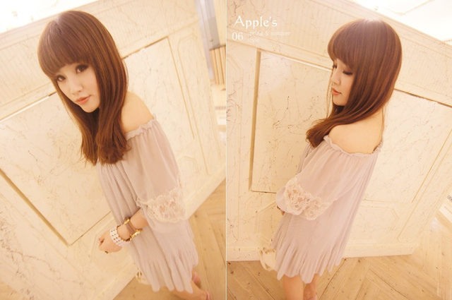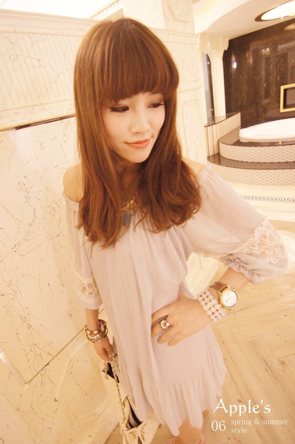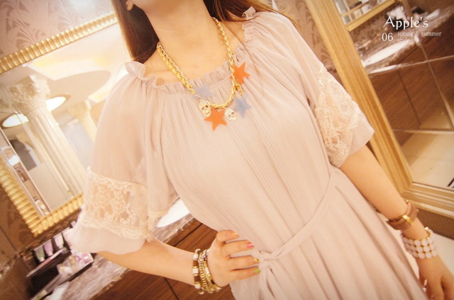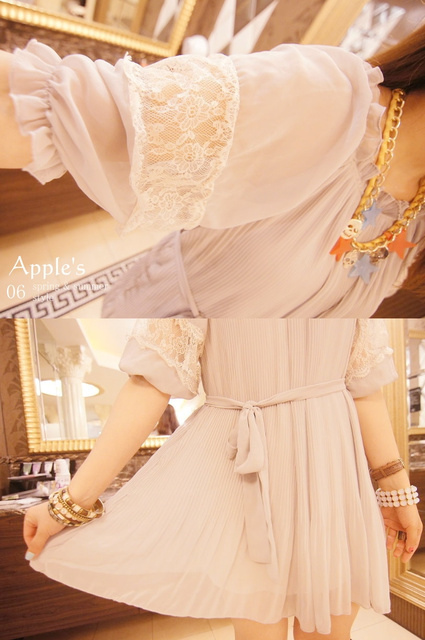 香氛幻境 正韓 甜美夢境雪紡接蕾絲百摺小洋裝