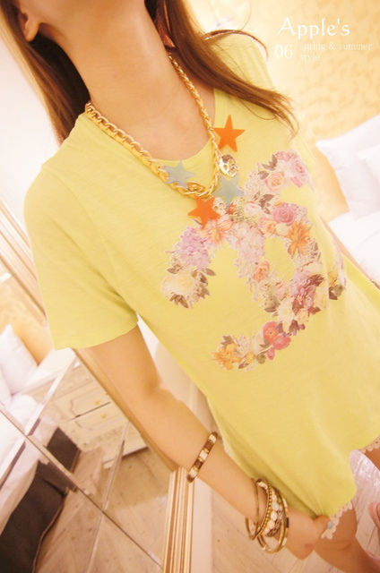 蕾絲花絮 正韓 純淨甜心女孩繞花小香款短T