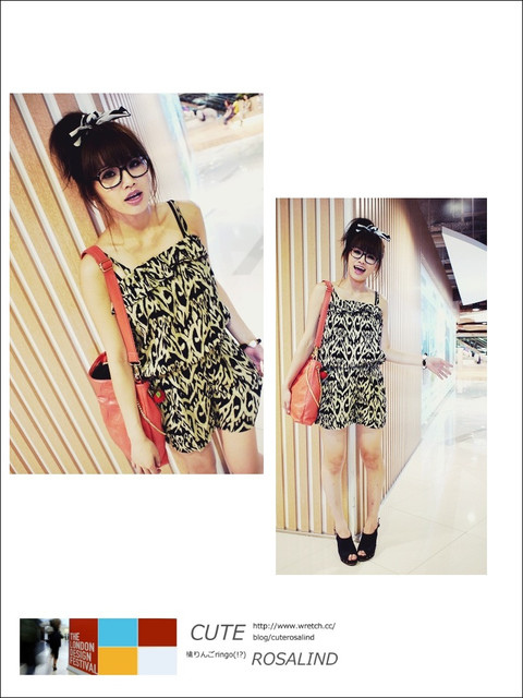 PUFFY玩弄視覺動物紋荷葉連身短褲