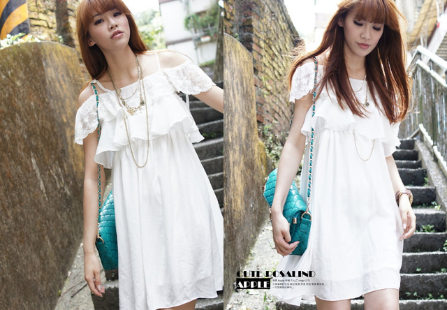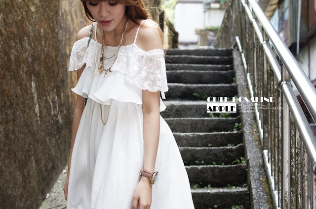 正韓 夢幻女神細肩膀帶蕾絲洋裝