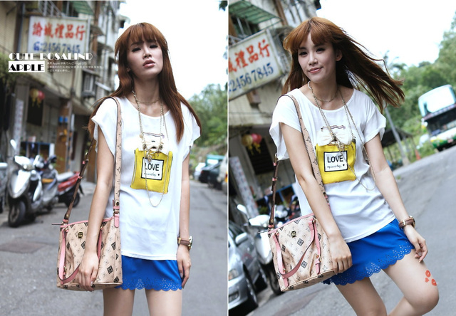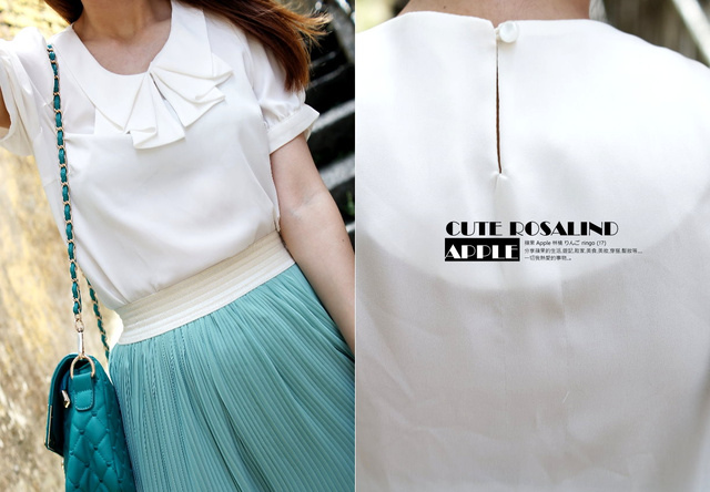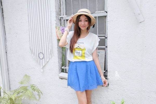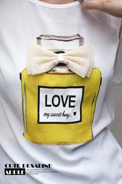 韓國 立體蝴蝶結LOVE香水雪紡拼接棉質上衣