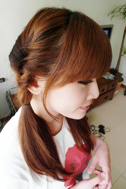 就想我這樣在綁個兩邊馬尾就可以出門了說
