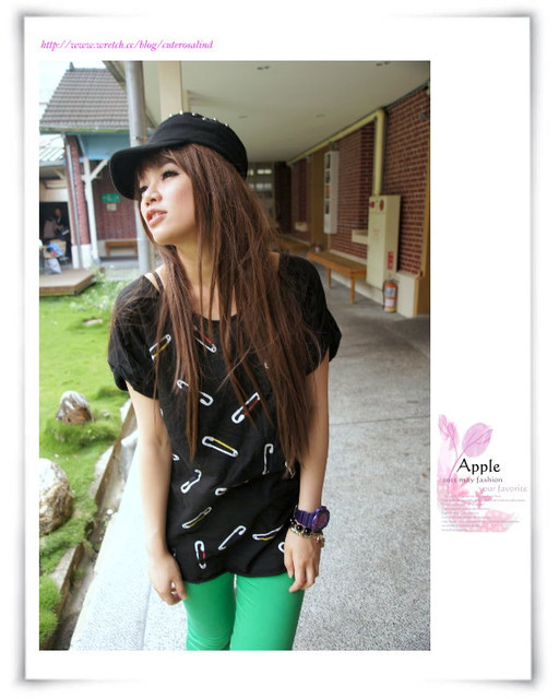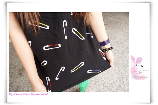 俏皮可愛別針圖案個性感上衣T恤