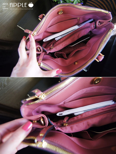 1. ◤IGIRLS◢ 素色斜紋多夾層肩揹手提兩用包 (紫藕)