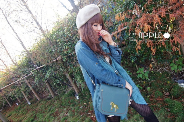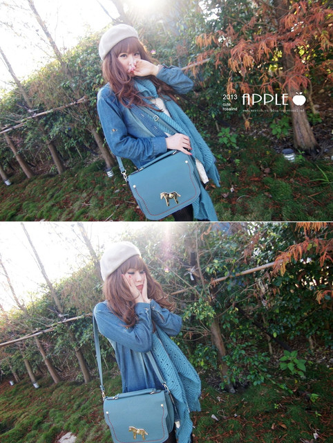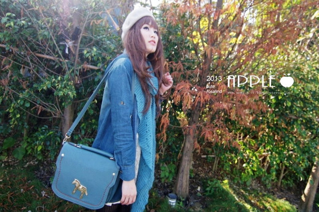3. ◤IGIRLS◢ 熱門韓款學院風小馬肩背包 (橄欖綠)