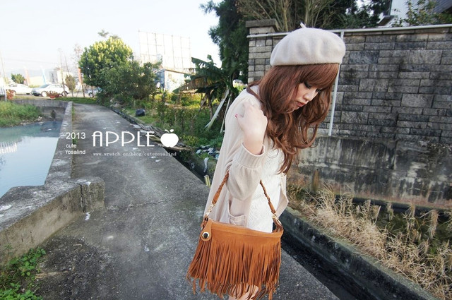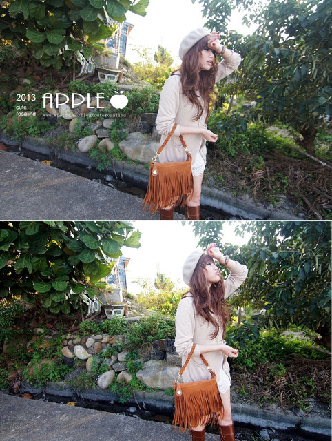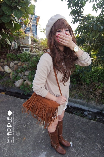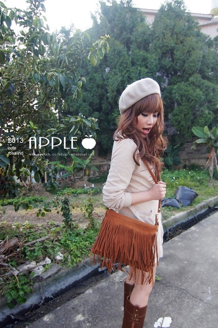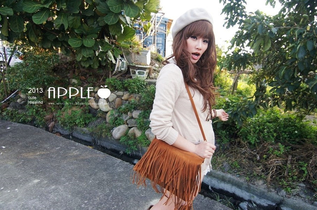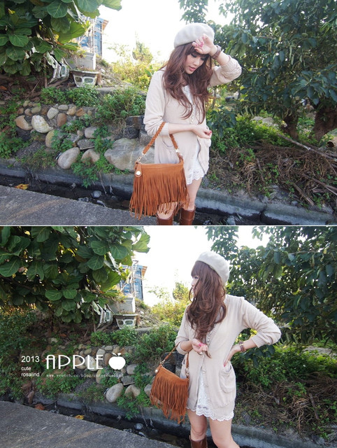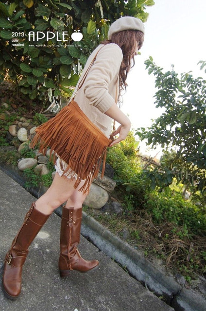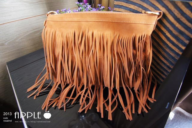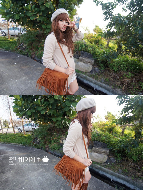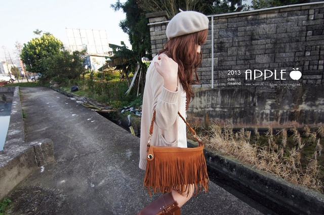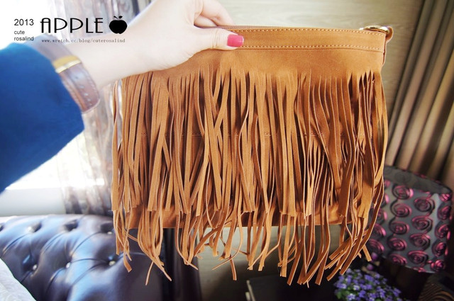 4. ◤IGIRLS◢ 韓國滿版流蘇反麂皮手提包 (茶)