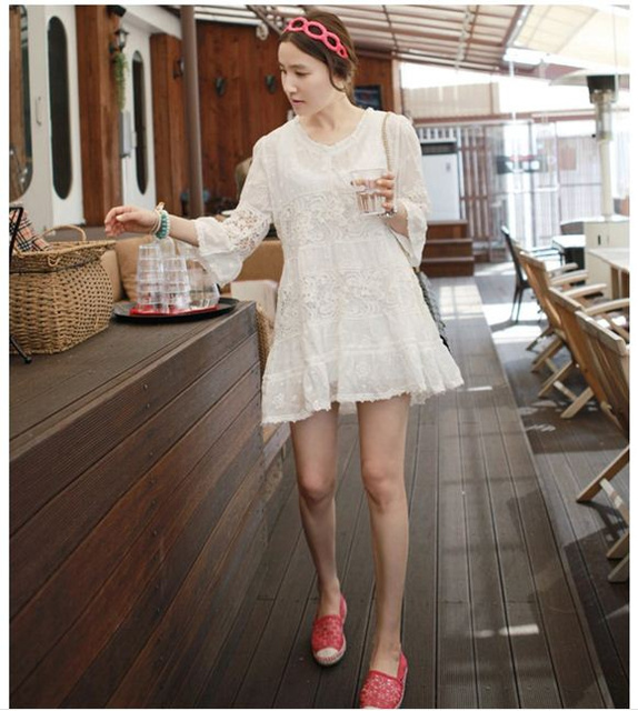 2.法式浪漫喇叭袖蕾絲連衣裙
