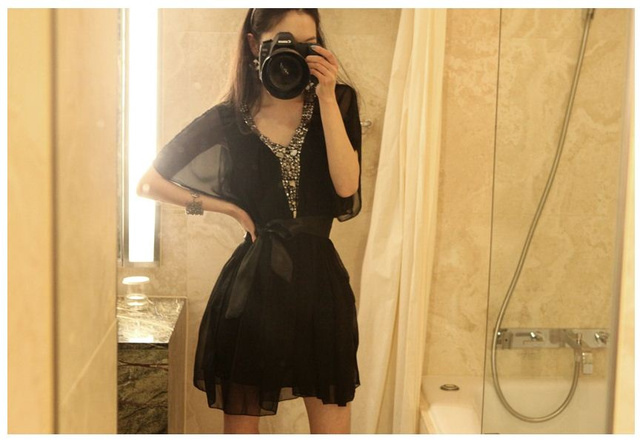 6.正韓超美露肩腰身飄逸雪紡連身裙洋裝