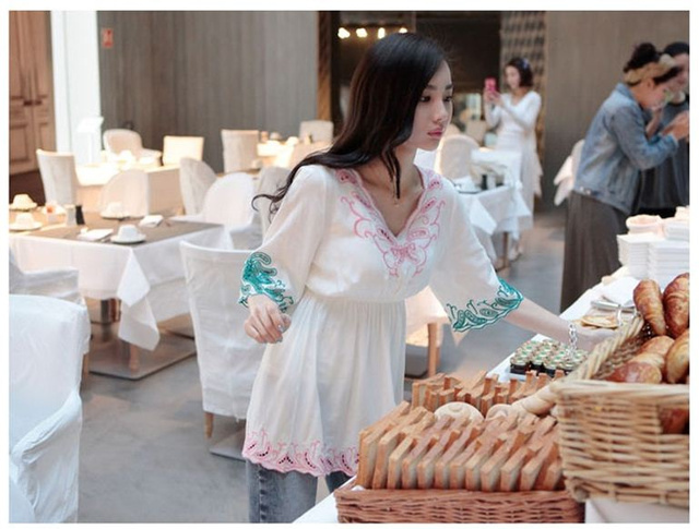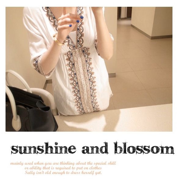 21.波希米亞風刺繡花邊V領連身裙洋裝