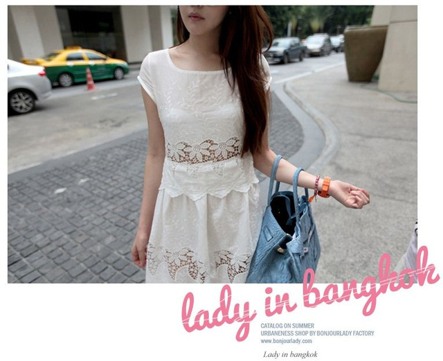 1.甜美氣質刺繡雕花造型束帶洋裝