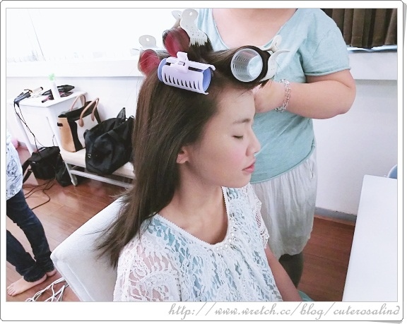 其實這時候我的頭髮還沒完成(妝OK了),不過造型師先去幫其他部落客打點了