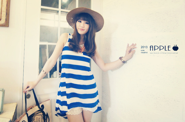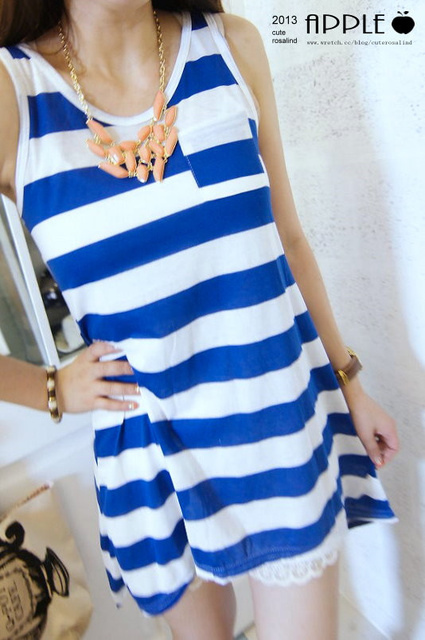 NO.4:寶藍色不規則下擺夏天感條紋傘洋