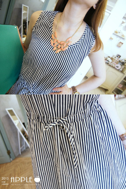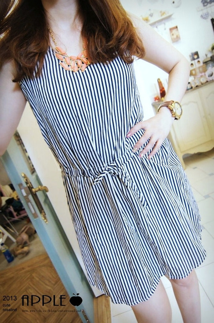 NO.5:寬鬆版型束腰綁帶直條紋傘洋