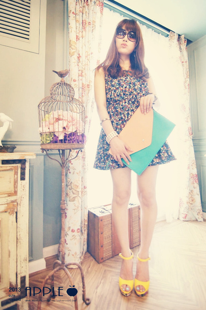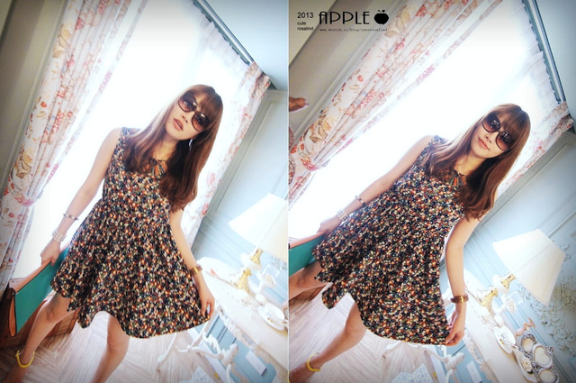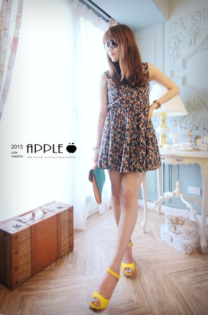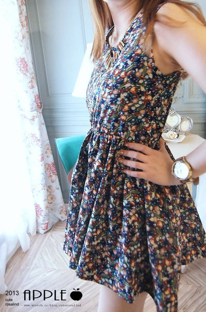 NO.12:粉嫩色系棉質碎花傘狀洋裝
