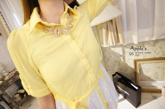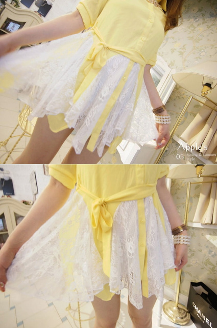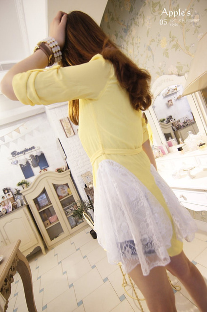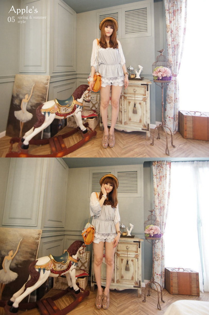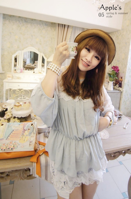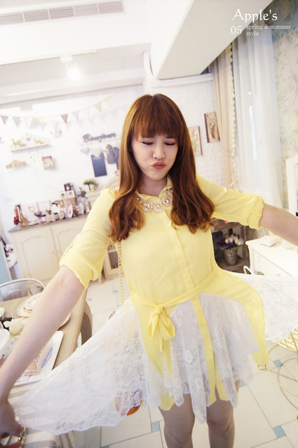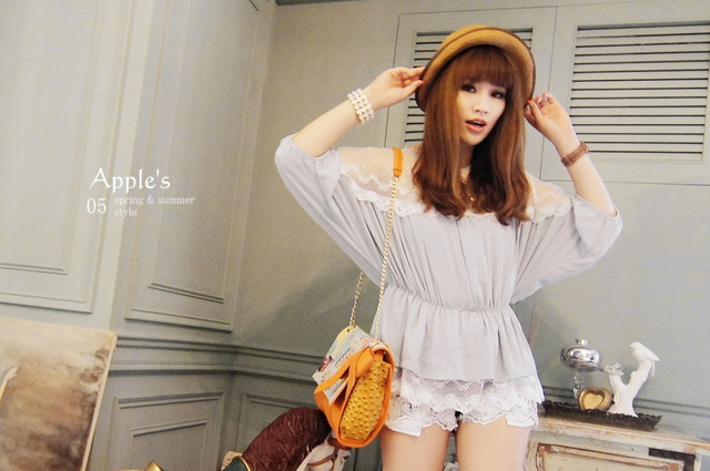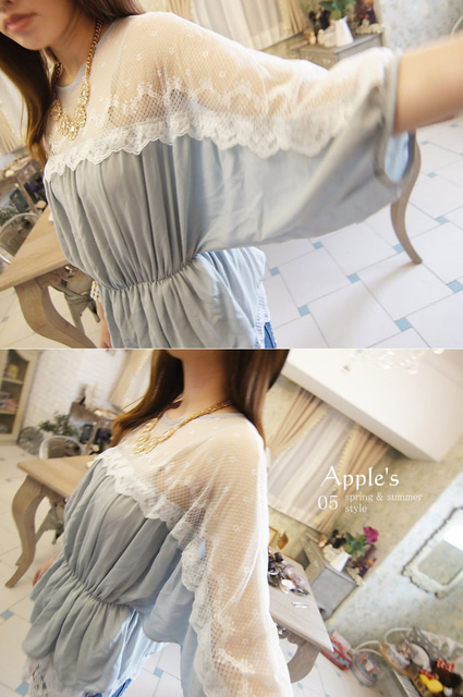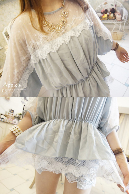 Jewellery girls‧輕鬆步伐上蕾絲透膚縮腰擺拚蕾傘洋上衣