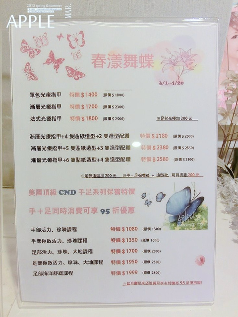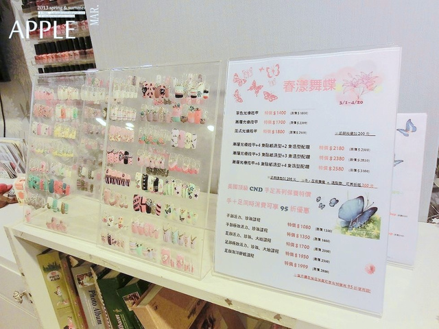 1〉CND專業手足SPA護理 2〉水晶指甲 3〉光療指甲