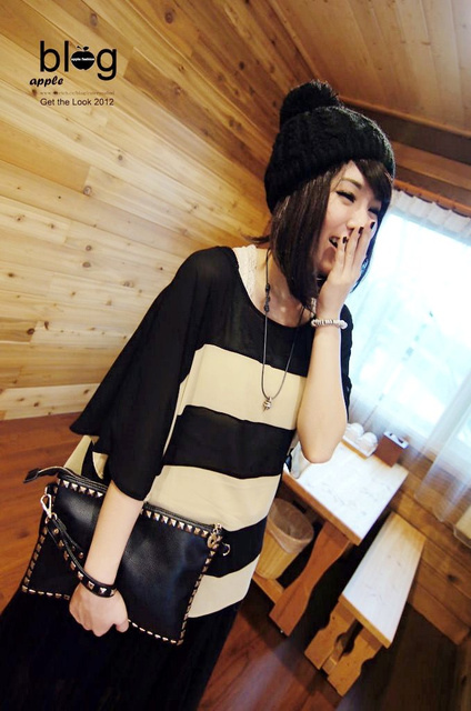 SPIRAL GIRL寬條紋雪紡長上衣