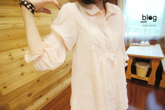 粉紅色的水袖罩衫