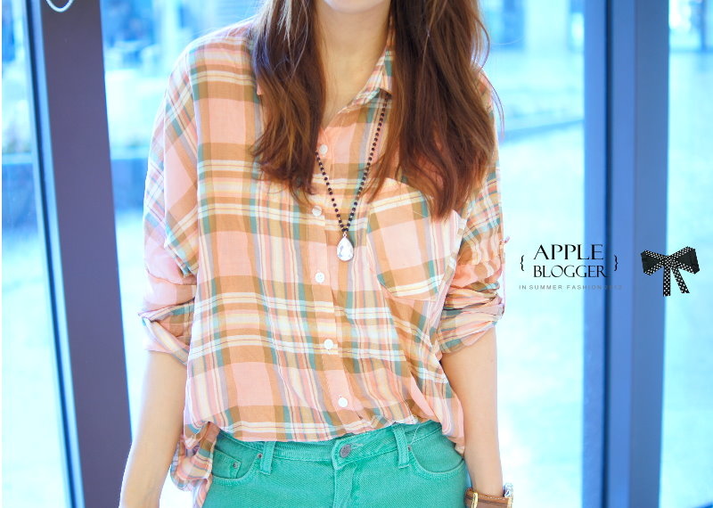 Zola 正韓 超舒適 絲棉格紋斜口袋襯衫