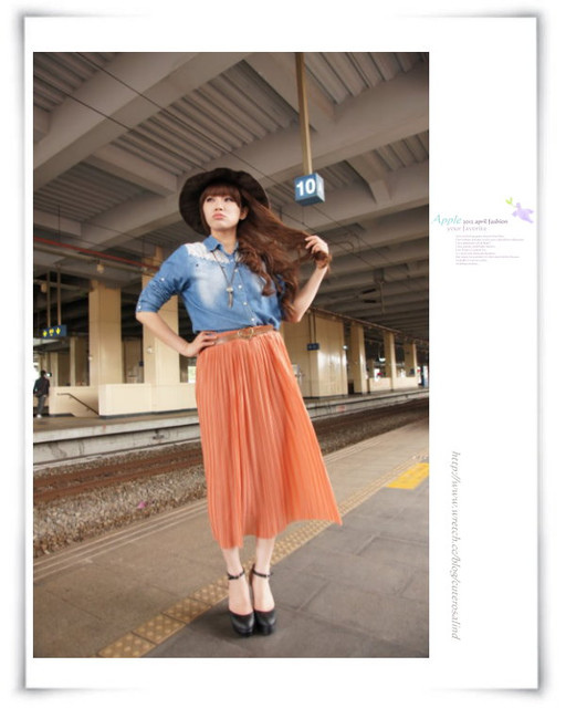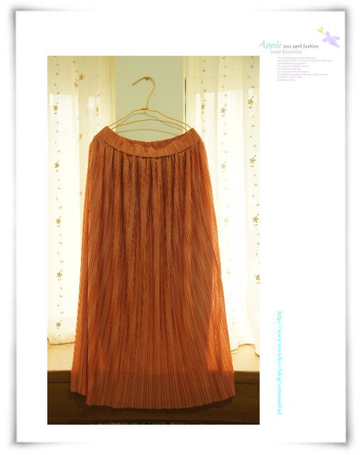 9.復古風琴摺橘色緞面百折長裙