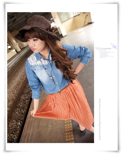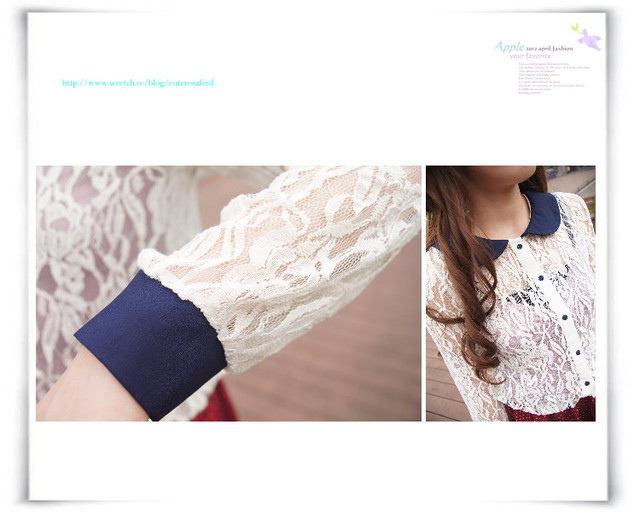 12.蕾絲透膚感附領襯衫