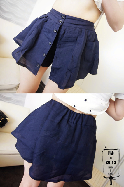 正韓連線鬆緊鈕扣口袋日本棉麻渡假風慵懶OL褲裙-深藍