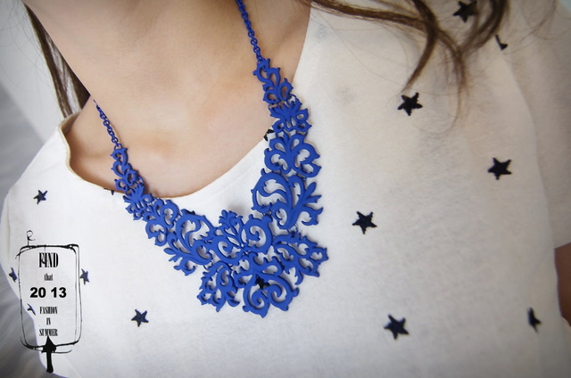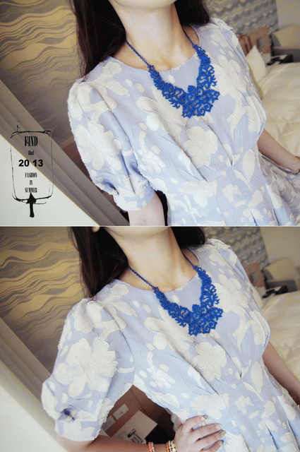 韓國直送金屬蕾絲巴洛克宮廷感雕花片型華麗項鍊-藍
