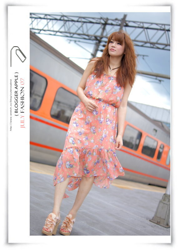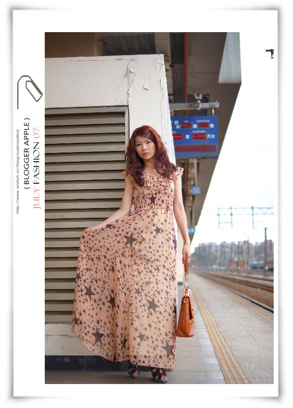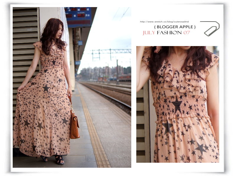 (18)粉橘色滿天星斗設計感長洋裝(就是愛敗家)
