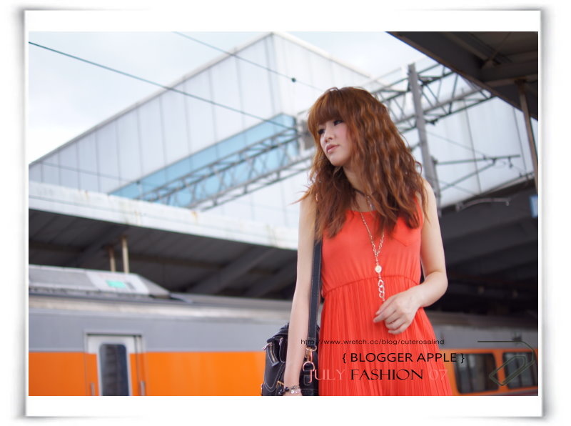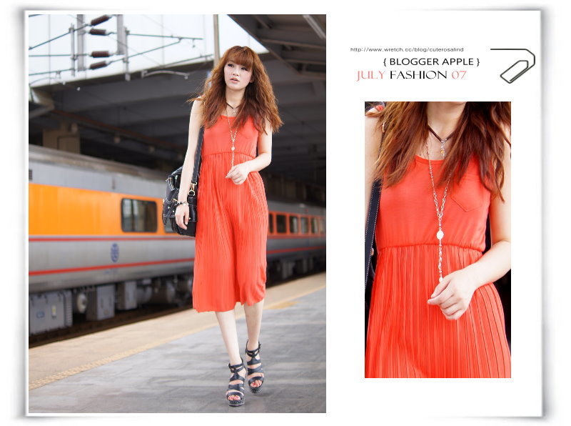 (17)簡單款橘紅色棉質百褶裙長洋(86GIRL)