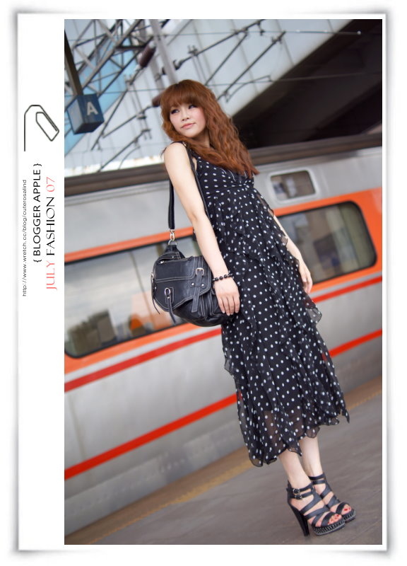 (19)波浪感點點水玉黑色雪紡長洋裝(就是愛敗家)