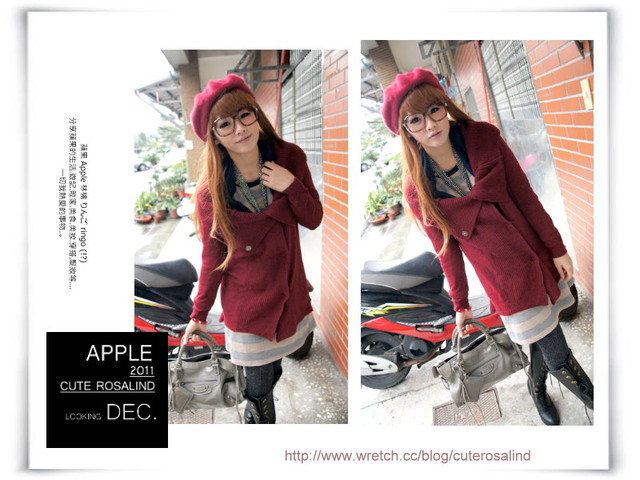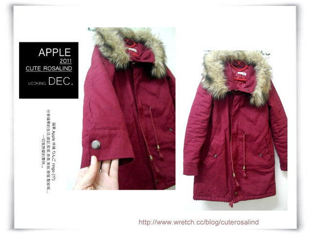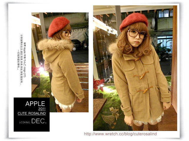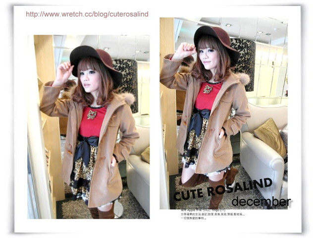 6.網拍I-STYLE韓版英倫奢華皮草木釦毛呢修身外套(連結)