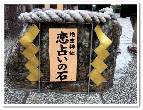 地主神社裡有一對相距10米遠的「戀愛占卜石」,