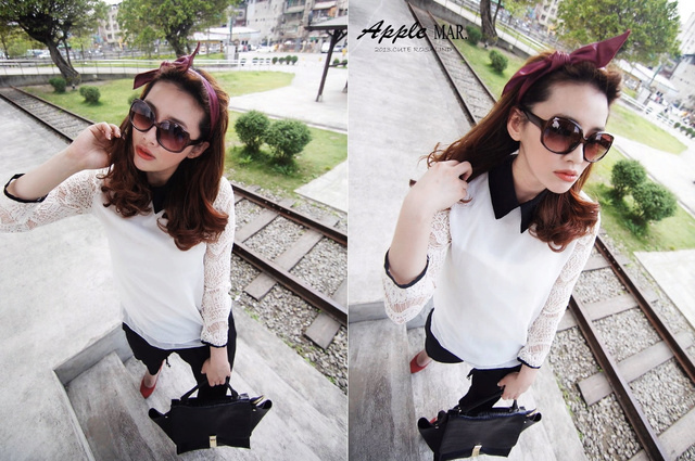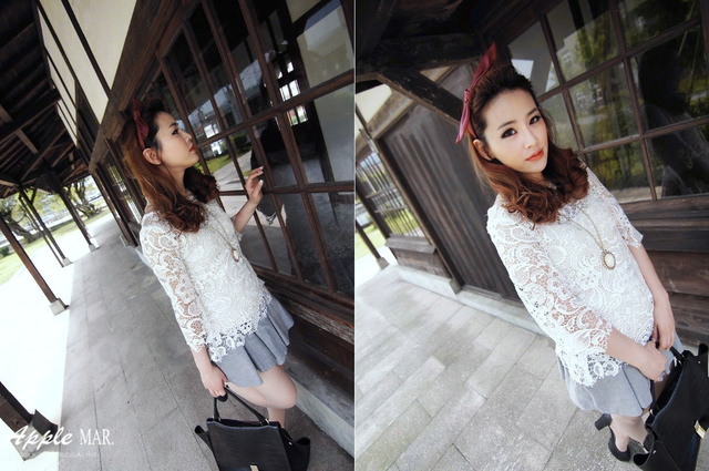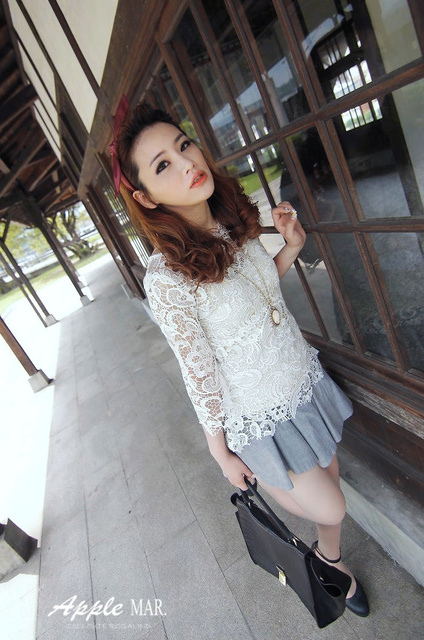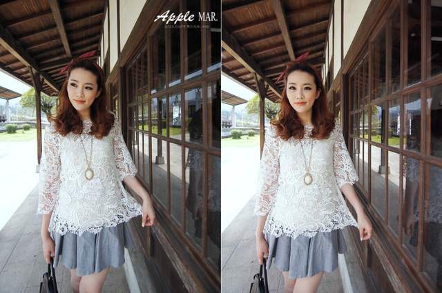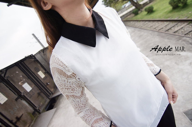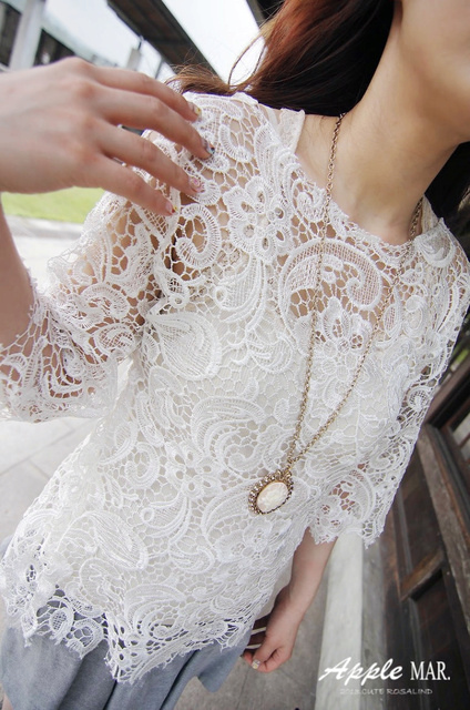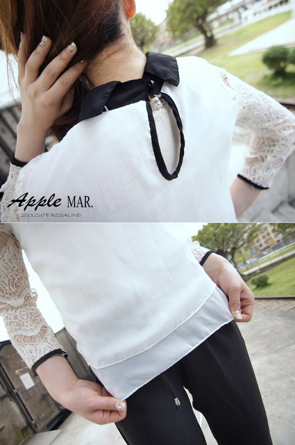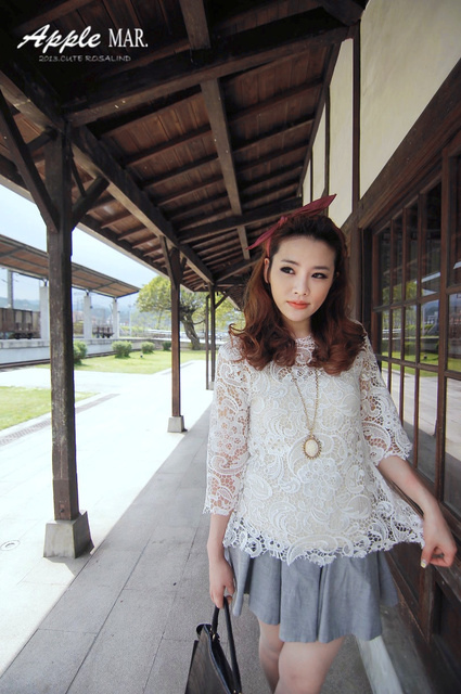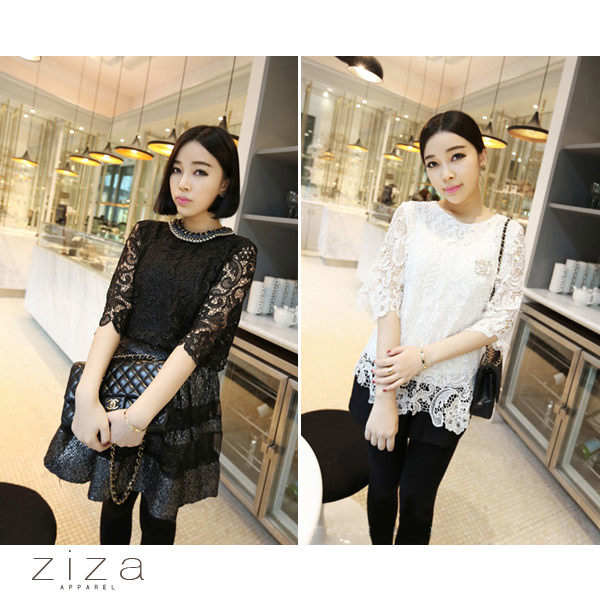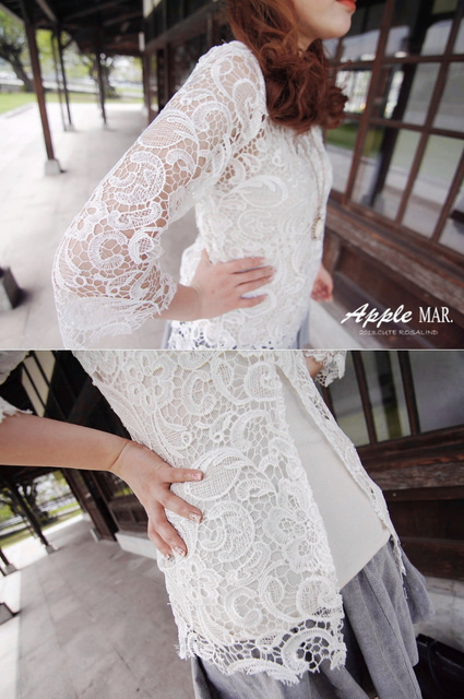 ZIZA‧Spring Love ‧韓版後開叉優雅蕾絲上衣-白