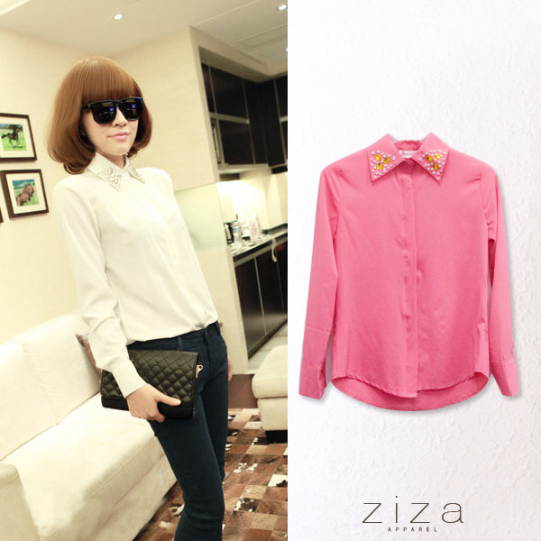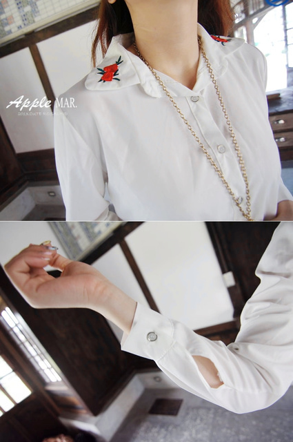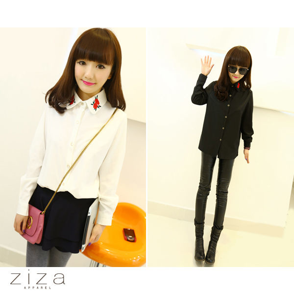 ZIZA‧Spring Love ‧手工刺繡復古玫瑰花領雪紡襯衫