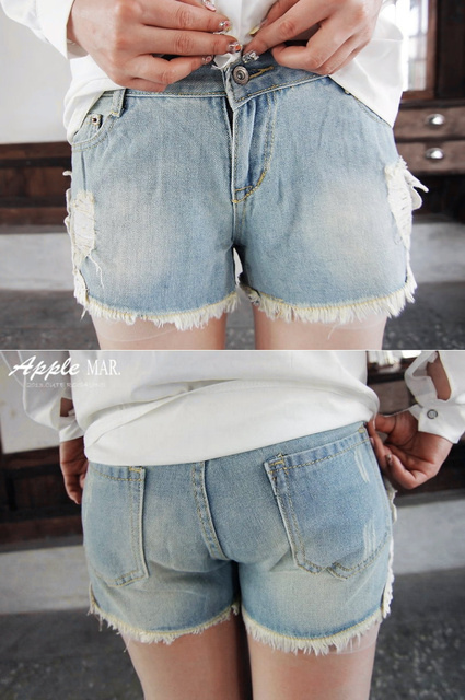 + ZIZA‧Spring Love ‧手鉤布蕾絲牛仔短褲