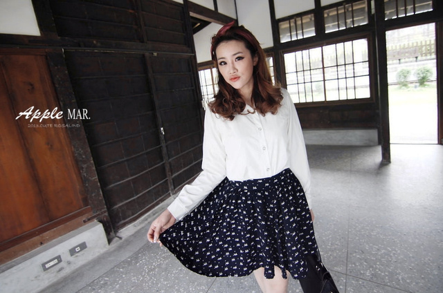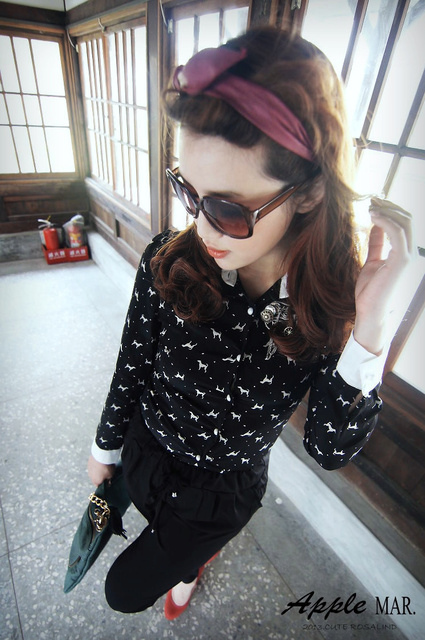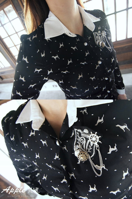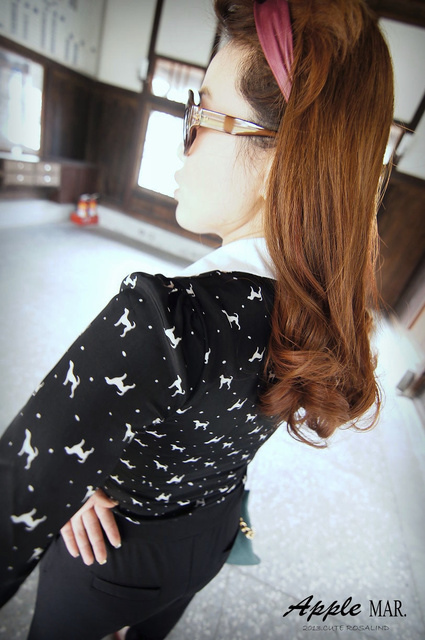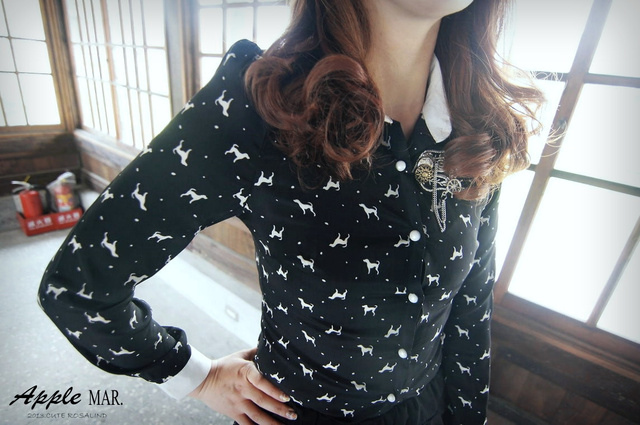ZIZA‧Spring Love ‧可愛小狗點點撞色雪紡襯衫-黑