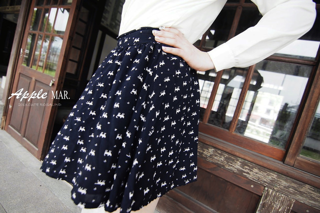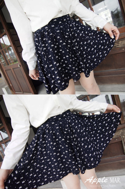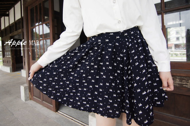 + ZIZA‧Spring Love ‧俏皮小貓咪圖案鬆緊短裙-藍