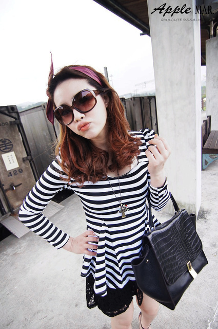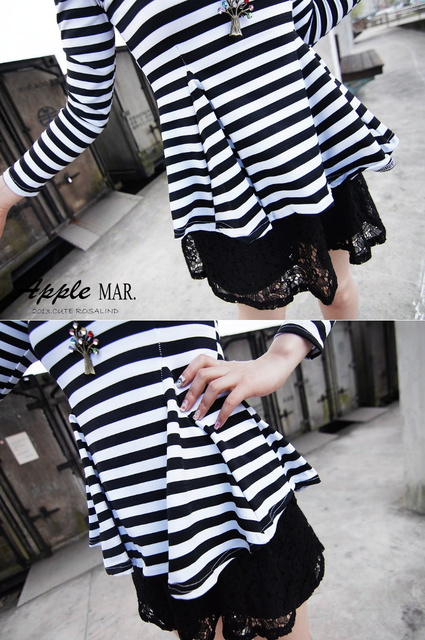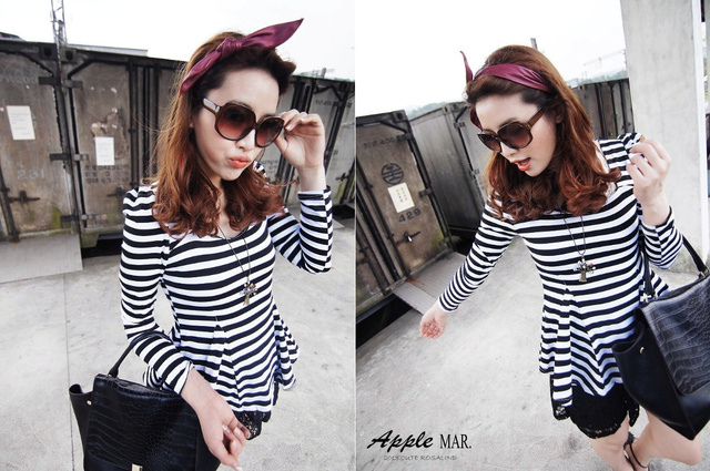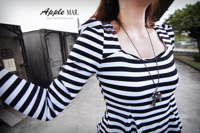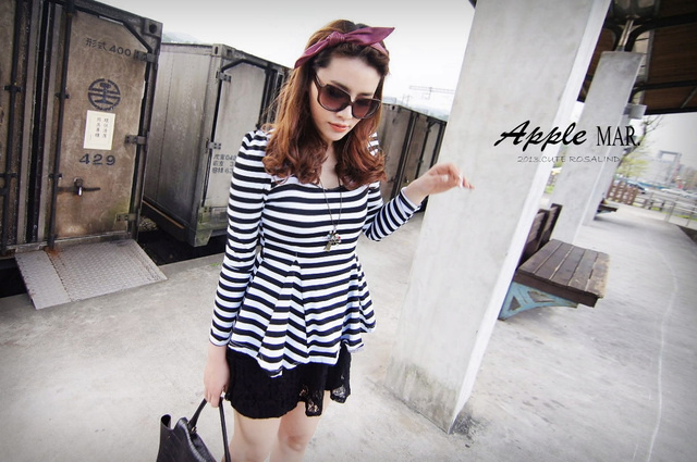 ZIZA‧Spring Love ‧韓版收腰修身傘襬條紋上衣-黑白