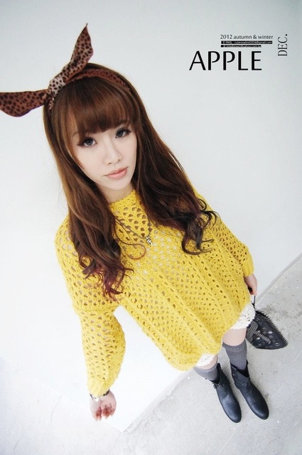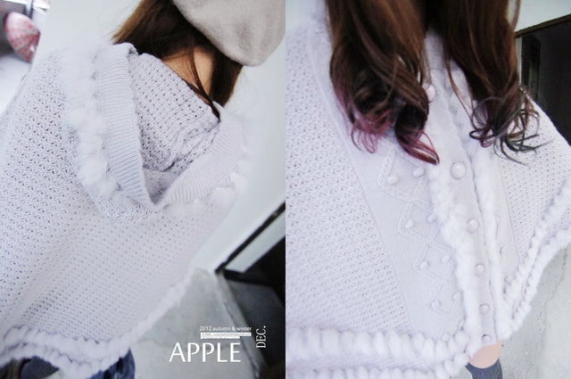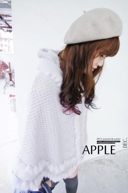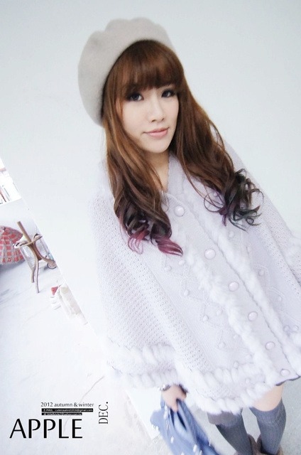 韓素面彩色毛球橫紋混兔毛寬針織衫