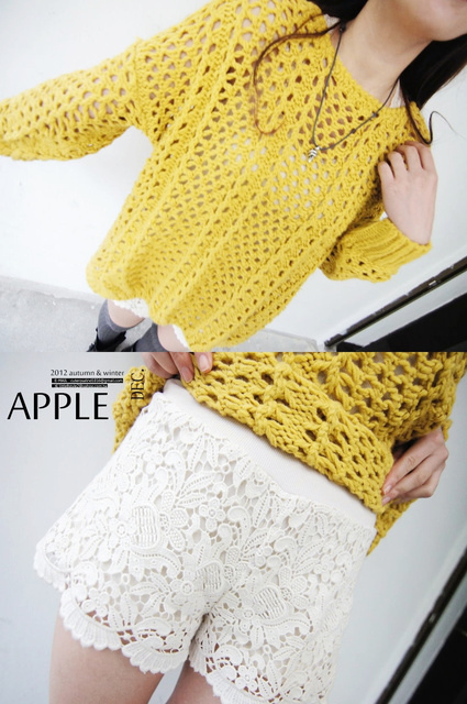 +姿意飛舞滿滿蕾絲花紋鬆緊邊花瓣短褲