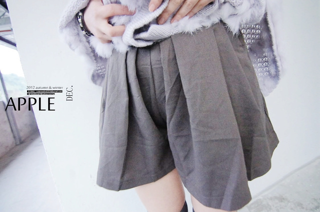 +韓版彈性腰頭幾何秋冬配色雪紡短褲 咖黑