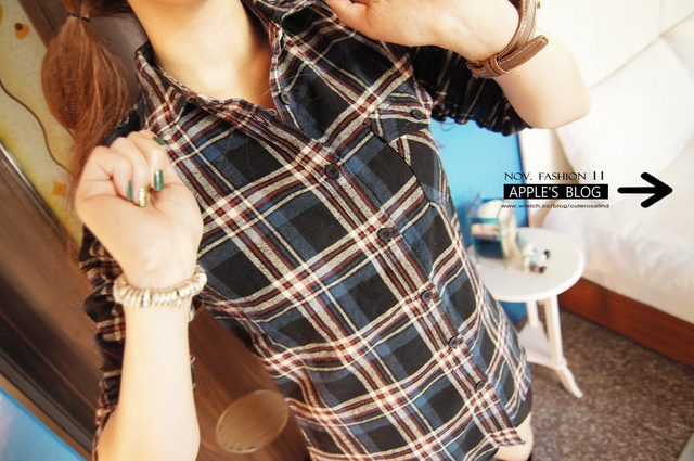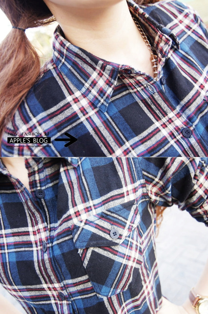 小格紋單邊貼袋襯衫 - (丈青格 女M)