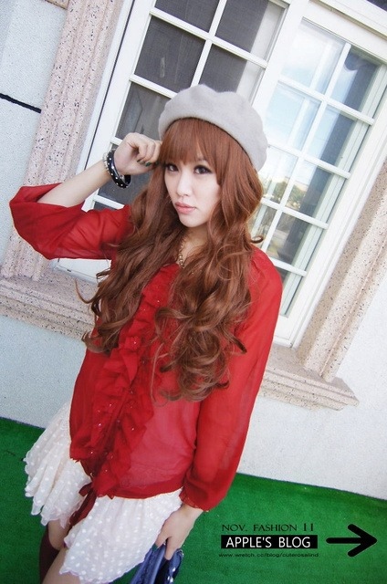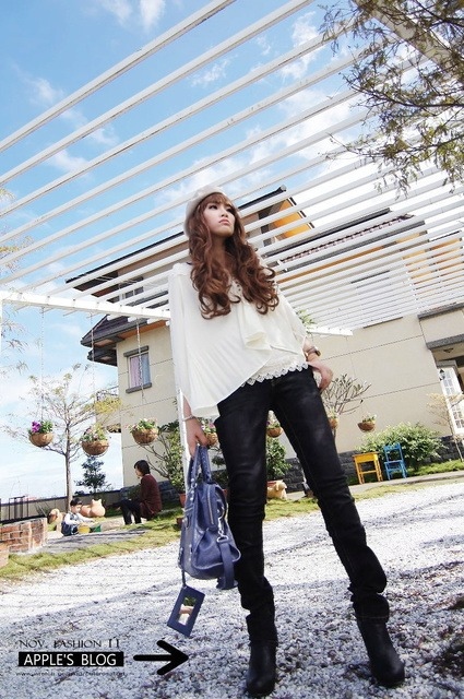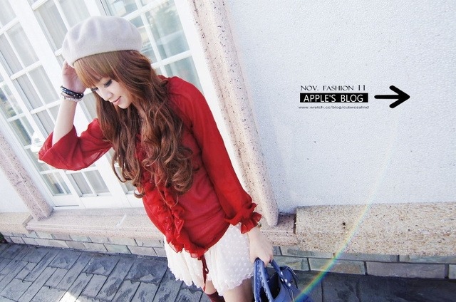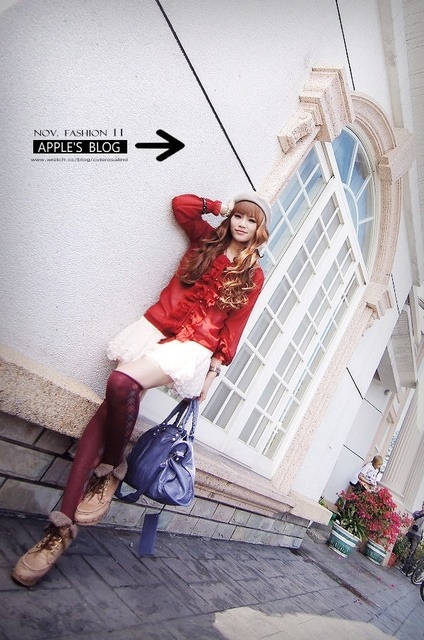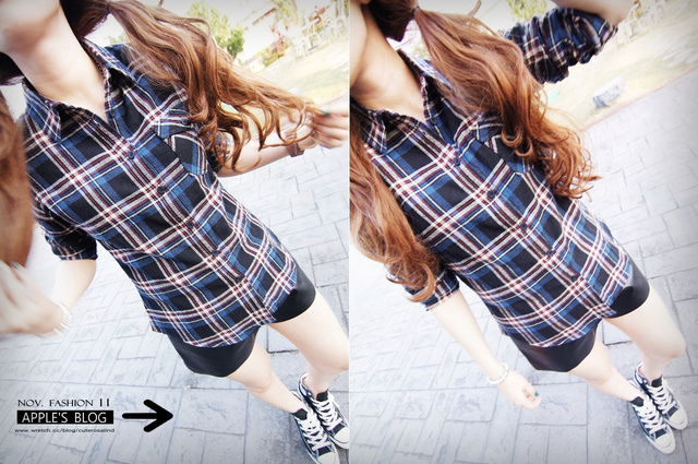 簡單搭配了雪紡褲裙還有菱格膝上襪