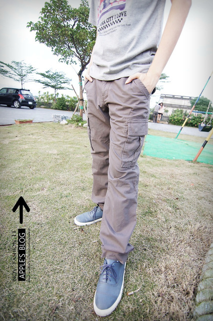 兩側的立體外貼繡口袋造型以及細心的褲型剪裁